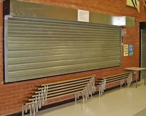 A 4 hour fire rated tubular motor shutter more suited to smaller openings such as kitchen serveries and reception counters.